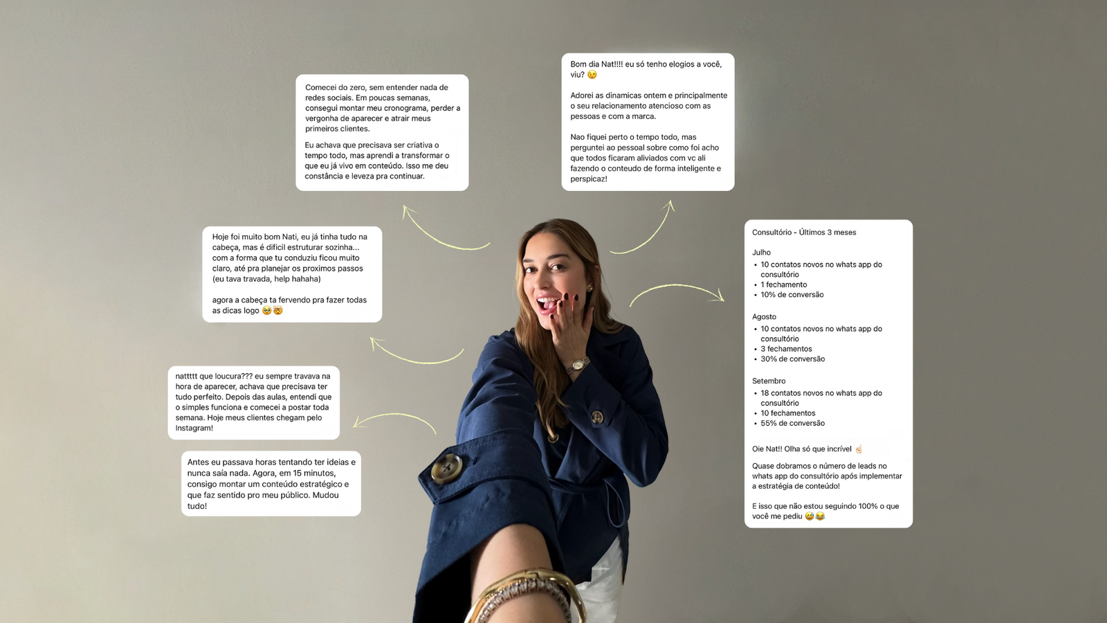Além disso, ajudo pessoas físicas que desejam começar a produzir conteúdo ou que já produzem, mas precisam de mais organização, direcionamento e senso estético.